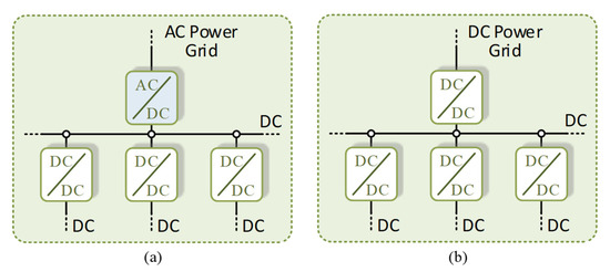 Unified multi-port systems when applied in: (a) AC power grids considering an AC–DC converter for a single AC interface and multiple DC–DC converters for multiple DC interfaces; (b) DC power grids considering a DC–DC converter for a single DC interface and multiple DC–DC converters for multiple DC interfaces.