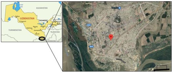 Map showing the location of the sampling sites in the Termez district, Surkhandarya region, Uzbekistan.