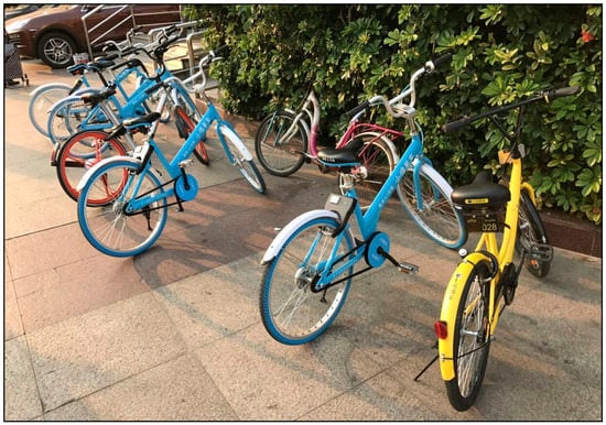 In this context, it is not surprising that the managers of Chinese cities, as a once “Cycling Kingdom”, re-discover the potential function and benefits of urban cycling in dealing with the transportation and environmental problems they are facing. That is the reason the central government and its officials constantly showed their pro-cycling attitude and plans through a series of formal and informal documents []. In the meantime, a series of technological innovations around bikes and relevant infrastructures were also implemented within the pro-cycling area to bring bicycles back to the city []. Among them, the series of innovations that enable the business of two kinds of rental (or say, “sharing”) bicycles—“public bicycles” and “Smartphone-Based Sharing Bicycles” (SBSBs, hereafter) showed their importance as the business grew rapidly in China in the past several years. The former refers to the kind of rental bicycles with docks and/or stations, which are provided and operated by certain private or state-owned companies. SBSBs are different as they do not have fixed stations/docks and can be unlocked/locked and charged through certain mobile phone applications. For public bicycles, by the end of 2016, more than 400 cities and counties in China had been equipped with public bicycle systems, which have provided 750 million trips to users across the country []. By 2020, SBSBs have been put into operation in more than 360 cities across the country, with 19.45 million vehicles invested, and the average daily order volume of sharing bicycles exceeds 45.7 million [].