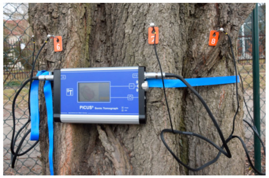 - Durlak, W.; Dudkiewicz, M.; Pudelska, K.; Dąbski, M. Using Picus® Sonic Tomograph to Assess the Health State of Trees of Monumental Sizes. In File of the Commission for Architecture, Town Planning and Landscape Studies of the Polish Academy of Sciences; Politechnika Lubelska: Lublin, Poland, 2017; Volume 13, pp. 73–82. Available online: https://ph.pollub.pl/index.php/teka/article/view/1704 (accessed on 29 May 2021).