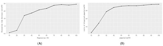 Figure 12A shows the evacuation time decrease ratio by population increase. Over 0% evacuation time decrease ratio indicates the advantage of introducing the system. The maximum evacuation effectiveness appears when the total population is over 70%. On the contrary, total evacuation time increases if there is less than 23% of the population. Figure 12B illustrates dispersed population pattern according to the total population change. The maximum dispersion ratio is around 28% and is observed when the population ratio is greater than 40%. Therefore, the total population must be at least 23% for the system to improve the total evacuation time and 70% to get maximum evacuation effectiveness.