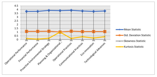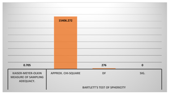 We have employed essential statistical techniques to estimate data analysis first, such as descriptive statistics to identify the vital characteristics of factors. Moreover, skewness, standard deviation, and kurtosis verified the normality of the data, which is a pre-requisite for SEM-based modeling. We further employed SEM-based multivariate techniques, such as exploratory factor analysis (EFA), to confirm and condense modified constructs and items. We used Kaiser–Meyers–Olkin (KMO), Bartlett’s Sphericity methods, rotated component matrix analysis, and total variance explained methods in EFA. The EFA method is a vigorous technique to validate the incorporated items and constructs and sample adequacy and appropriateness.