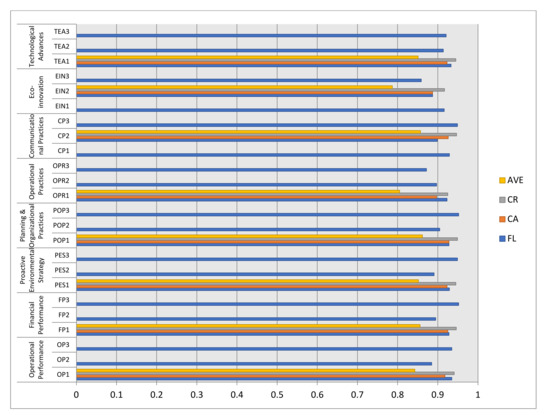 The study’s nature is cross-sectional; we have used a quantitative and deductive method to conduct the research study. The measurement scales of the modified survey form were taken from earlier studies; we have employed adapted items of proactive environmental strategy and its determinants, for instance, planning and organizational practices and operational and communicational practices from previous studies such as [5,12,17,18,19,20,21,22,23,24,25,37,53,59]. The adapted items of the firm’s operational and financial performance were taken from [2,15,23,35,60,73]. The modified measurement scales of eco-innovation were taken from [16,29,30,32,61,62,63,64,65]. The modified items of technological advances were taken from previous literature [33,56,66,67,68,69,70,71,72].