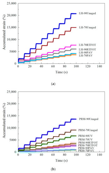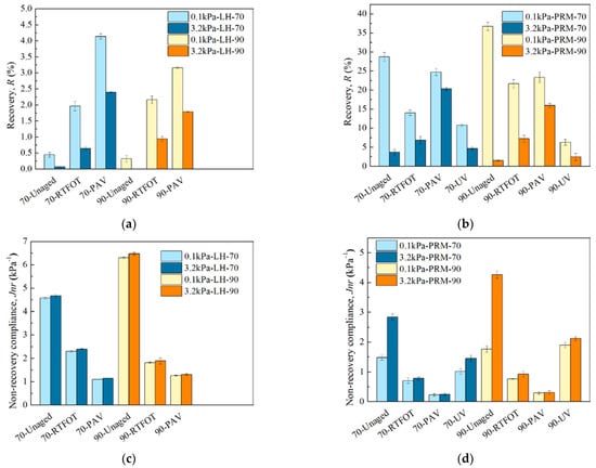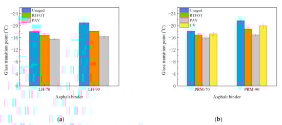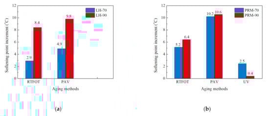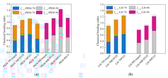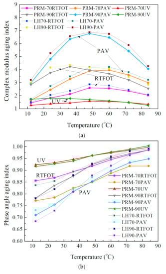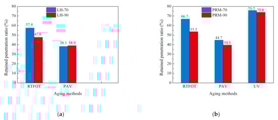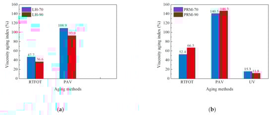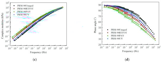 - The evaluation of aging behaviors by physical tests shows that the susceptibility of PRM-modified bitumen to the thermal-oxidation aging and UV aging is different. The semi-empirical indexes (i.e., VAI, RPR, SPI) cannot accurately reflect the UV aging resistance of PRM-modified bitumen. There are no consistency results presented when using the semi-empirical aging index to evaluate the thermal-oxidation and UV aging resistance of PRM-modified bitumen.