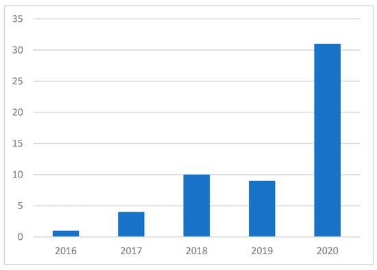 This section provides a review of the selected articles by publication years. It can be seen in Figure 8 that there is a massive increase in the number of articles in the last few years because Industry 4.0 technologies such as the CPS, the IoT, the sSmart factory, drones, and AGV, as well as supply chain sustainability, have become the key subject areas for both researchers and academicians.