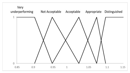 Within project evaluation, fuzzy-logic-based methods are common among the methodologies used to evaluate project success [38,39,40,41,42]. The success of projects significantly determines the overall organizational effectiveness [43]. The fuzzy concept of project success is since that the word “success” is an indicator that has no sharp boundaries on the basis of which general categories could be created [44]. “Indicator A, B and C did not meet the plan value” and “Indicator A value is unacceptable”, but “Indicator A value is acceptable compared to indicator B value”. These examples illustrate the fuzzy set theory developed by Zadeh in judging the performance of indicators [45].