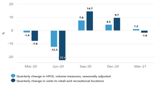 These results were compared with the data from the Australian Bureau of Statistics, which depicts the change in the mobility and household final consumption expenditure (HFCE) after a year of the pandemic (Figure 7).