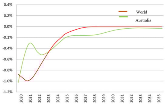 The third-leading export sector of Australia in terms of earning is education. Unfortunately, due to travel bans, thousands of students were not able to enter the State at the start of 2020 to continue their education. The government did not try to save the higher education sector, even though COVID-19 had risked 21,000 jobs at the national level, because the revenues had fallen from 4.6 billion dollars to 3 billion dollars [,]. According to the government, the universities have enough funds to survive the impact of the pandemic and do not need support from the government []. The universities and opposition have applied for financial assistance, which has not been approved by the Commonwealth. The impact of higher education on the economic revival of the country is still questioned []. The contribution of the manufacturing sector to the economic development of Australia is also significant. However, the significance of this sector has gradually decreased because the government has attempted to expand the economy by developing export industries instead of the manufacturing division. With the onset of a pandemic, the importance of national self-sufficiency has increased. In this regard, the Commonwealth Treasurer has addressed the existing barriers in the manufacturing sector by introducing flexibility in the labour market and a reduction in taxes [].