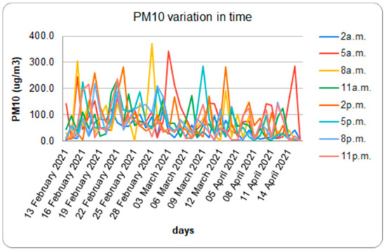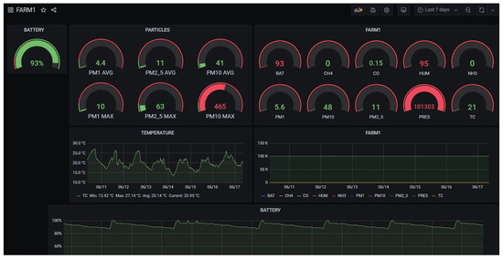 Compared to the platforms mentioned above, the platform implemented within this project transmits data via wireless technologies to the data aggregator associated with the Cloud. The platform is a combination of the estimated AP concentrations at the European level and the monitored data, an essential advantage of the system being the wide range of parameters of the stable environment that it can monitor: temperature, humidity, atmospheric pressure, CO, NH3, and PM sensors (PM2.5, PM1, PM10). In addition to monitoring the AP, the platform offers farmers the opportunity to use the data in a valuable way to reduce increased emissions.