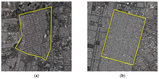 Satellite image of the case study neighbourhoods (a) Gisha; (b) Afsariyeh. Source: Google Maps.