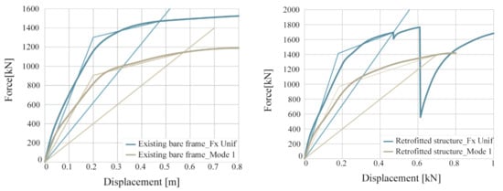 Push-over analysis results on the existing bare frame and on retrofitted structure.