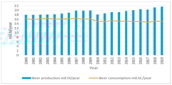 The brewing industry in Europe, as well as in the world, underwent significant changes recently. Until the end of the 19th century, most of the breweries were local and privately owned. National, let alone international brands, did not exist [1]. Until the second half of the 20th century, beer was mostly a local product. With the expansion of the biggest breweries into new regions and industrial consolidation, the brewing industry is becoming a global one after this period. On the one side, there is a process of gradual consolidation with numerous fusions and acquisitions of large commercial breweries and brewery groups, whose main goal is to achieve economies of scale. This process is reflected in the ever-increasing share of large brewery groups on the market. Other changes that took place in the last decades in Eastern Europe (mainly a wave of revolutions leading to democratic systems) led to the loosening of barriers to entry of specific beer markets by international companies and chains and to further gradual consolidation, which resulted in a lower number of active breweries around the world [2]. This trend had a significant influence on the brewing industry; in 1998 the market share of the four biggest beer producing companies made up 22%, however, in 2010 it was almost 50% of the global beer market [3,4]. Contemporary global beer production is under the control of a few large brewery groups: Anheuser–Busch InBev (AB InBev, Leuven, Belgium) including SAB Miller (London, Great Britain), Heineken (Amsterdam, The Netherlands) and Carlsberg (Copenhagen, Denmark), Asahi Group Holding (Japan). These companies make up approximately 41% of global beer production [5]. The beer prepared by these large companies is very homogeneous and it is exactly homogenization of beer that is one of the reasons for craft beer’s success [6].