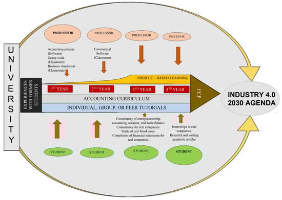 In this sense, higher education institutions (HEIs) play a fundamental role in helping new accounting professionals to integrate themselves into this new technological and sustainable era [24,25], allowing them to innovate and adapt to the conditions and demands of Industry 4.0 and the 2030 Agenda [26]. Similarly, teachers must help students to approach social and environmental problems, since accountants must display an advanced ecological, environmental, civic, and ethical profile [27].