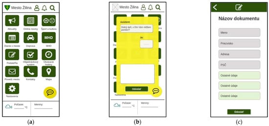 In the future, the proposed application can also apply to other cities, where it would only be necessary to adapt the services offered to suit the specific requirements of the city and the colour scheme, which is designed depending on the typical urban colours []. The proposed mobile application is intended to represent a two-way connection between the city and its citizens and would primarily reduce physical interaction with public administration bodies and increase efficiency and comfortable access to the services provided by the city.