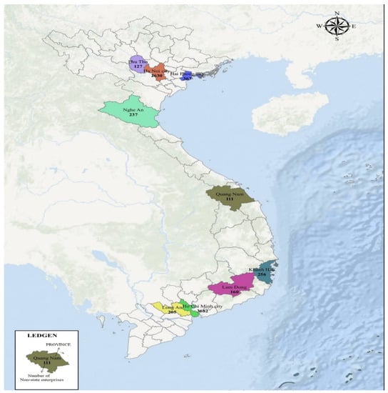 Most SMEs were concentrated in Ha Noi City (2630) and Ho Chi Minh City (3682), Vietnam’s two biggest cities, while only 111 firms were located in Quang Nam. The rest were spread across the remaining seven provinces in the country’s three regions. The locations of those Vietnamese firms considered in this study are illustrated in Figure 3.