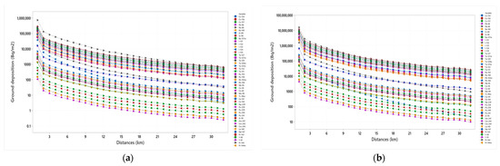 | Ground deposition at 19 km | 100 | Ground deposition at 2 km | 100 |