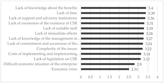 - The main barriers related to the implementation of CSR in small and medium enterprises relate to restrictions in the field of knowledge in this scope [35,60].