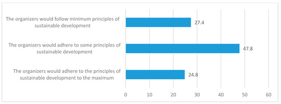 The next research question was dedicated to determine whether it was important for the respondents to adhere to the principles of sustainable development during the music festival. The respondents were asked whether the scope of application of the principles of sustainable development is important when choosing a music festival. Results are plotted in Figure 3.