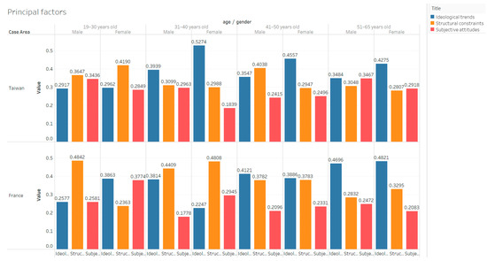The gender and age difference of principal factors in Taiwan and France.