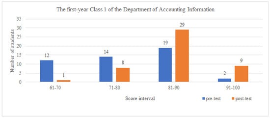 Pre- and post-test performance of the first-year Class 1 of the Department of Accounting Information in the 2020 academic year.