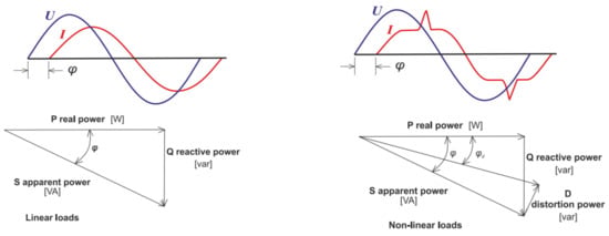 Nonlinear loads—adding the distortion power D of nonlinear loads in the mathematical expression of apparent power S is taking into consideration the impact of harmonics distortion of current and voltage
