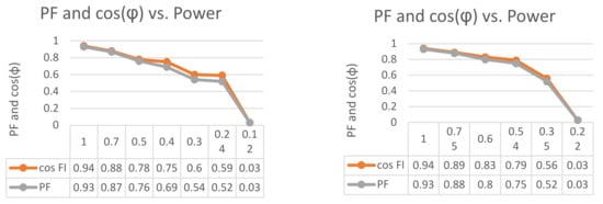 Basic problems with the power factor then depend on the quality of this circuit. A passive filter circuit, as a cheaper solution, is utilized in most LED fittings. Active filter circuit, as the optimal solution, unfortunately, due to cost-cutting, is hard to find in the market. Serious producers are using them exclusively for special dimmable applications with higher market prices. ENERGY STAR program requires that the power factor of LED fittings with rated power higher than 5 W must be at least 0.70. For LED fittings with rated power lower than 5 W, no limits of the power factor are required [17,18,19]. This requirement is parallel with the classification in the Commission Regulation (EU) 2019/2020 of 1 October 2019 [13] where displacement factor cos φ is required as follows: no limit