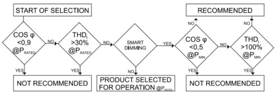 Algorithm of pre-evaluating method of selecting LED fitting based on negative influences on electric installation.