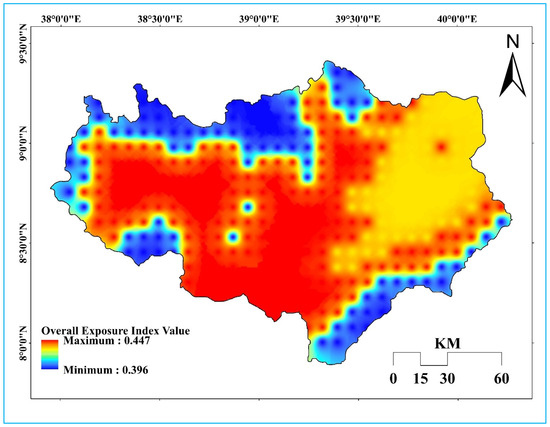 The spatial distribution of exposure to drought in upper Awash sub-basin.