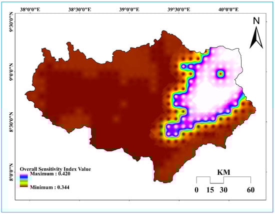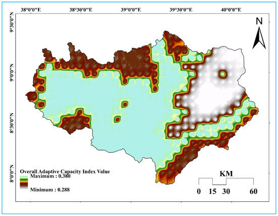 Finally, the values of drought sensitivity, exposure, and adaptive capacity were used as input to map and spatially demonstrate the sensitivity, exposure, and level of adaptive capacity of the households in the sub-basin using the Aeronautical Reconnaissance Coverage Map (ArcMap) extension of the Arc Geographic Information System (ArcGIS) 10.5®. This farm-level VI was also superimposed on the farm typologies to understand farm typology level of vulnerability for overall systems and in each of the study AEZ. Hoque et al. [86] suggested that a spatial mapping system for drought vulnerability that incorporates all drought categories using an acceptable weighting scheme should be developed to generate comprehensive vulnerability information to formulate drought mitigation and adaptation strategies.
