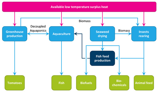 In these examples, surplus heat is used for greenhouse vegetable production and onshore fish production, which are considered in this paper. In addition, we also describe requirements for insect rearing and seaweed drying.