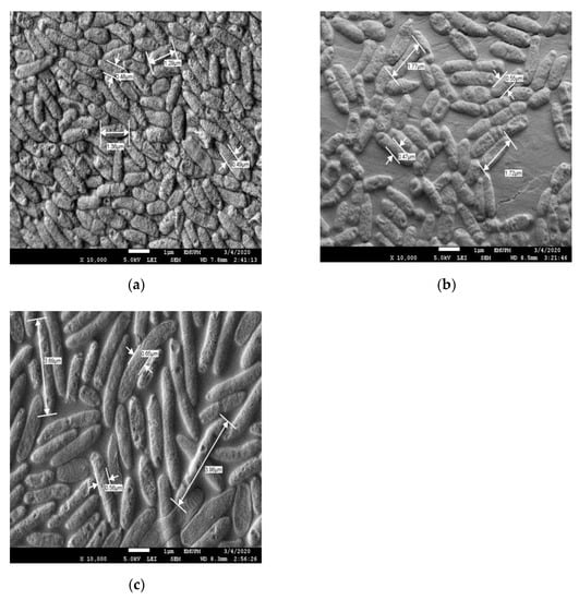 To further confirm the effect of Cr(VI) on the cells, FESEM analysis was conducted to compare the morphological changes of the cells in the control experiment to those of those cultivated in higher initial concentrations of Cr(VI) (Figure 2). It was found that the cells in the control experiment were multitudinous compared to the cells in higher Cr(VI) concentrations. It was also observed that, at high Cr(VI) concentrations, the cells seemed to exhibit a rough surface, which was attributed to the adsorbed Cr ions. Similar findings were reported by [21,27]. In addition, the cells also appeared to be elongated at higher Cr(VI) concentrations. According to [27], cells elongated into filaments as the result of continual longitudinal growth without cell division. The ability of cells to divide was abolished by DNA damage due to the effect of chromium toxicity, which resulted in the induction and expression of the division inhibitor SulA.