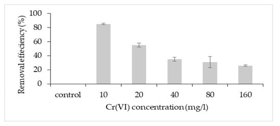 Cr(VI) removal efficiency at different initial Cr(VI) concentration.