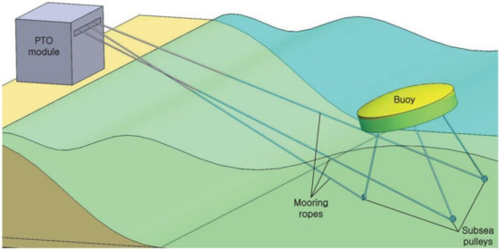 - Pascal, R.C.; Gendron, B.; Combourieu, A. Numerical Modelling of the Laminaria Concept with Coupled Mooring and PTO System. Available online: https://www.researchgate.net/publication/327591085_Numerical_modelling_of_the_Laminaria_concept_with_coupled_mooring_and_PTO_system (accessed on 30 August 2021).