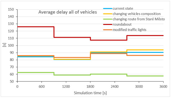 According to the performed experiments, it is evident that the best solution for improvement of the traffic situation for the given traffic hub was derived from the experiment with the change in traffic management in the direction from Staré Město.