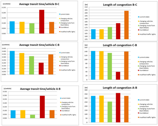 The evaluation of the experiments was based on a comparison of the length of congestion. The AHP method was used. Twelve criteria were used in multi-criteria decision-making, which was used to compare individual variants based on the results of simulation experiments and to select the optimal solution.