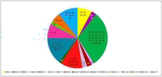From the qualitative confrontation between the evaluation criteria addressed in the constructed model and the goals of the SDG, it can be seen that the objectives of managing the city’s urban sustainability are partially aligned with the objectives pursued at a global level. This can be confirmed, as some SDG were not identified among the concerns of local management, namely SDGs 7 (affordable and clean energy), 10 (reduced inequalities), 14 (life below water), and 17 (partnerships for the goals).
