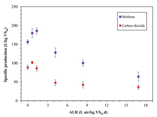 Effect of air dosing on specific methane and carbon dioxide production.