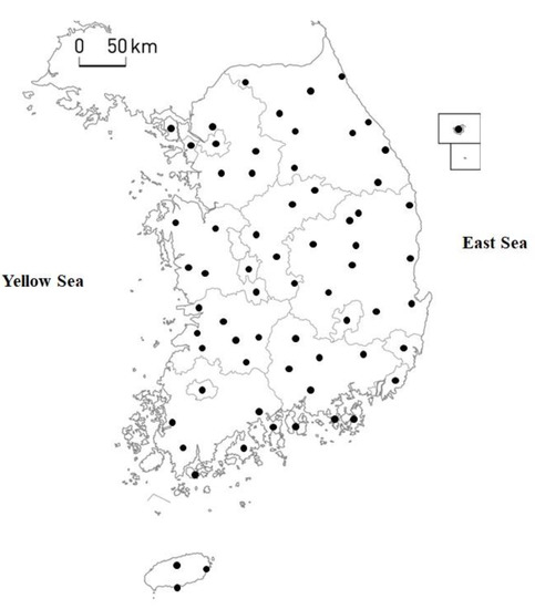 Regional weather stations in Korea.