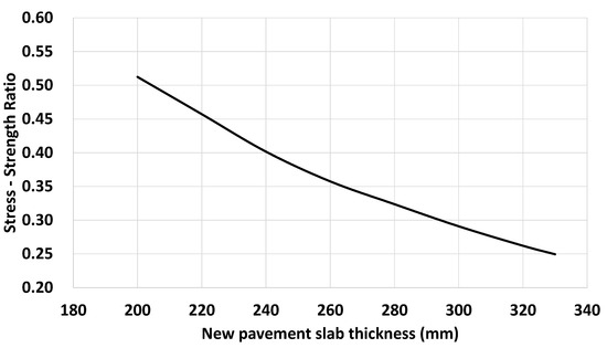 Stress–strength ratio of a new pavement slab according to its thickness.