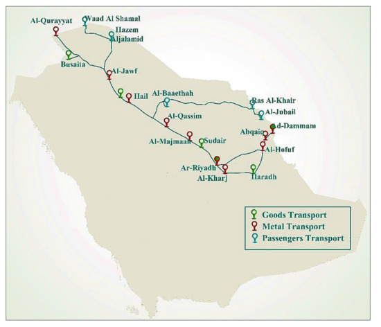 - Saudi Arabia Railways. 2021. Available online: https://www.sar.com.sa (accessed on 8 March 2021).