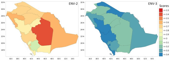 Geographic distribution of average responses for environmental impact clusters: ENV-2 and ENV-3.