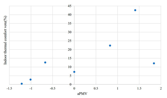 - These stilt houses are usually located under high humidity and high-temperature climates. Through the questionnaire survey of 472 residents, the proportion of aPMV values in the range −0.5–0.5 (the most comfortable state) for the indoor environment was only 7.2% and 42.6% of the responses were between 1 and 1.5 (comfortable most of the time). The data reveal that the inhabitants living in stilt houses have a wider thermal comfort range than urban residents.