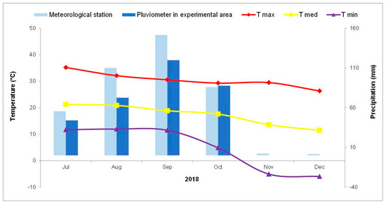 The region’s climate is temperate semidry with rains in summer, an average annual rainfall of 450 mm, and an average annual temperature of 17 °C [12]. Additionally, the ambient temperature was recorded every hour from July to December 2019 (Figure 2) by means of a data logger (HOBO®).