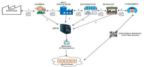 - Shahid, A.; Almogren, A.; Javaid, N. Blockchain-Based Agri-Food Supply Chain: A Complete Solution. IEEE Access 2020, 8, 69230–69243. [Google Scholar] [CrossRef]