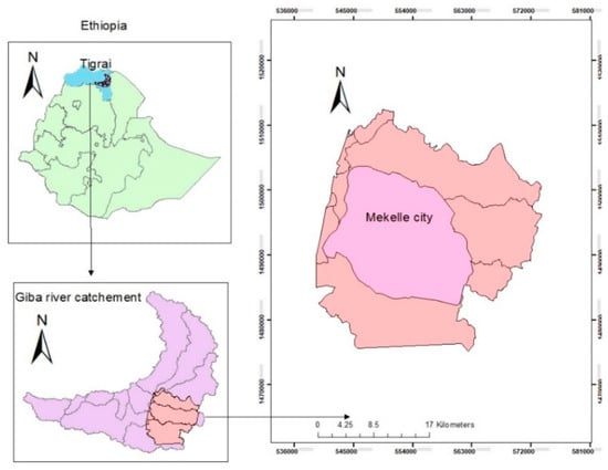 In the densely populated study area, six major watersheds, i.e., Middle Geba, Agulae, May Gebat Ilala, some parts of Suluh and Genefel which are tributaries to the Giba river basin—are the main water supply and sources of other ecosystem services for Mekelle metropolitan city. The study area is located within the Giba river catchment which is one of the biggest tributaries of the Tekeze river basin and has an area of 4019 km2 [13] There is an increasing reliance on distant catchment sources to meet requirements such as freshwater, food, fresh air and other ecosystem services.