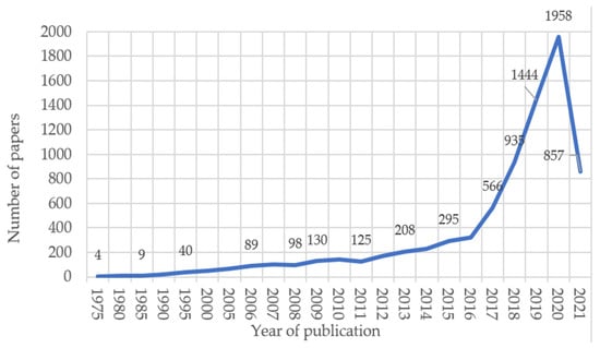 We based our search on PRISMA guidelines [40]. As a result, on 6 June 2021, we extracted a total of 10,195 papers which were downloaded in a tab separator format. Figure 1 shows the refining process until the final set was obtained.