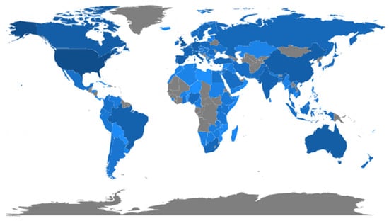 Visibility of scientific production. Legend: The color intensity is proportional to the number of publications.