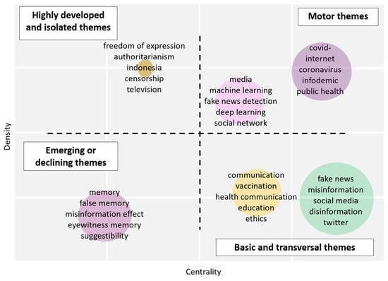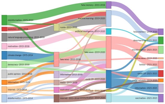 Other authors made bibliometric reviews in conjunction with information disorders on topics such as propaganda or rumor. For example, the study of Chaudhari and Pawar [32] analyzed propaganda in social media and offered evidence that it was related with fake news, political astroturfing, terrorism or radicalization. Similar findings were reported earlier by Tal and Gordon [33] who argued that, although propaganda plays a very important role in our lives, it cannot be considered an autonomous field of research. Wang et al. [34] carried out a bibliometric analysis of 970 articles indexed in WoS between 1989–2019 and found that the research on rumor propagation dynamics was directly linked with online social networks, social media and Twitter.