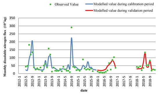 Comparisons of monthly observed and modeling total dissolved nitrogen of Regional Nutrient Management (ReNuMa).