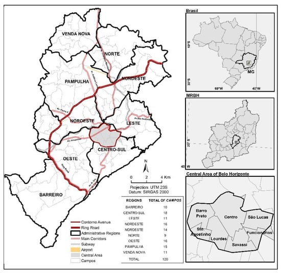 5] itself recommends this instrument to further the logic of multicentrality in the urban densification as a way to promote a better distribution of the activities in the territory, reducing the medium and long-distance flows. The Municipality of Belo Horizonte, the Capital city of the State of Minas Gerais, Brazil, according to the last Demographic Census data that took place in 2010, had a resident population of nearly 2.5 M, spread over an area of only 330 square kilometers. This high demographic density, exemplary of a great part of the Brazilian capitals, often goes side by side with the reproduction of innumerable precarious conditions when it comes to the provision of urban accessibility and mobility, due to the different levels of access to land, causing the socio-spatial peripheralization and worsening social vulnerability, besides the environmental degradation itself.